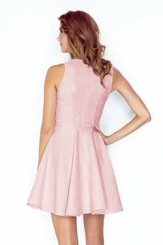 Morimia MM 014-5 Sukienka z koła - dekolt serduszko - ŻAKARD ŁEZKA - pastelowy róż - SALE %